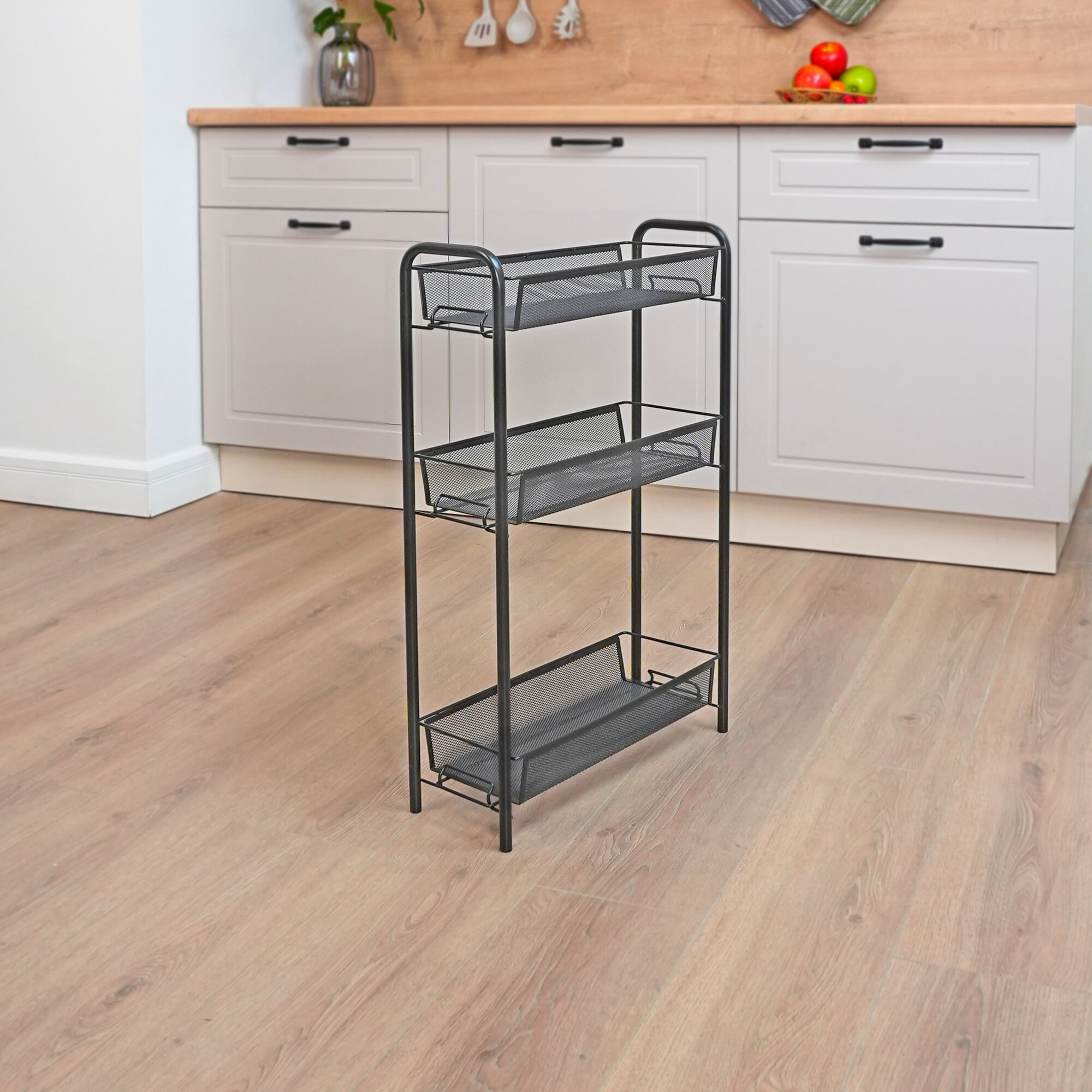 Этажерка металл, 3 секции, 44х17х71.5 см, с мелкосетчатыми корзинами, черная, ЗМИ, Ладья 1, Э 289 Ч