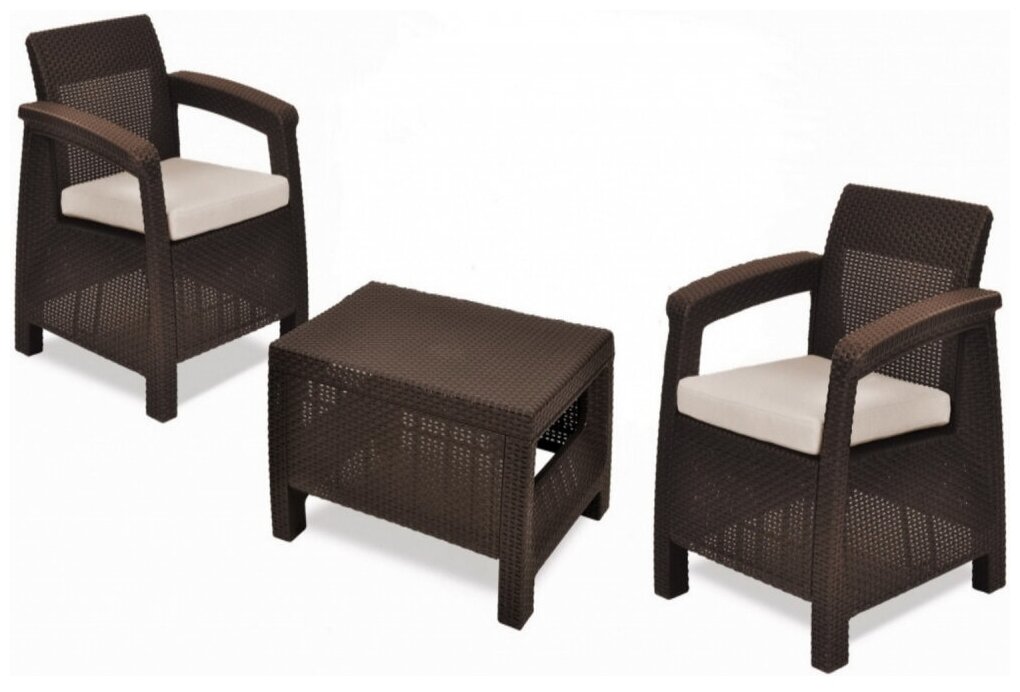Комплект садовой мебели Keter Corfu Weekend 223235В (стол, 2 кресла), коричневый 34 665 ₽