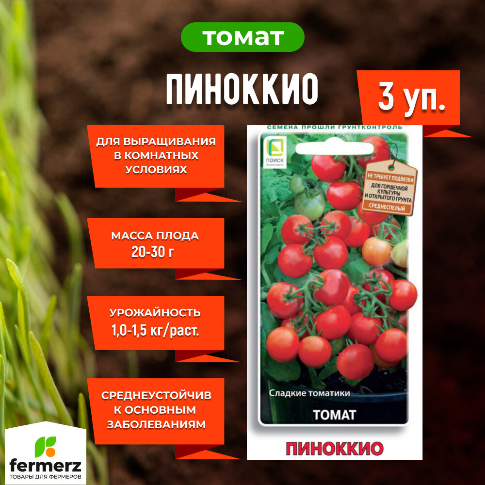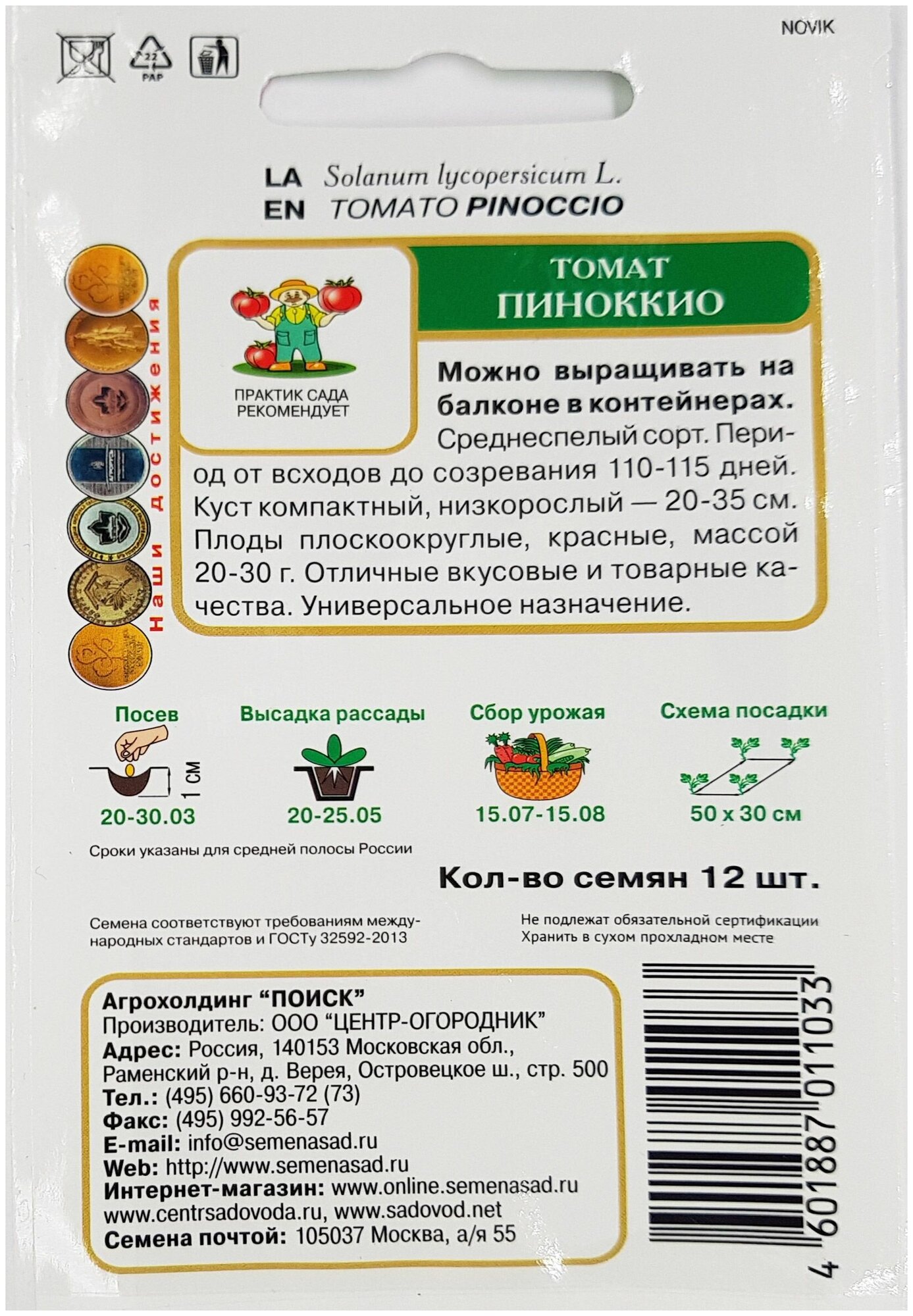 Семена Томат Пиноккио 12шт для дачи, сада, огорода, теплицы / рассады в домашних условиях информация: