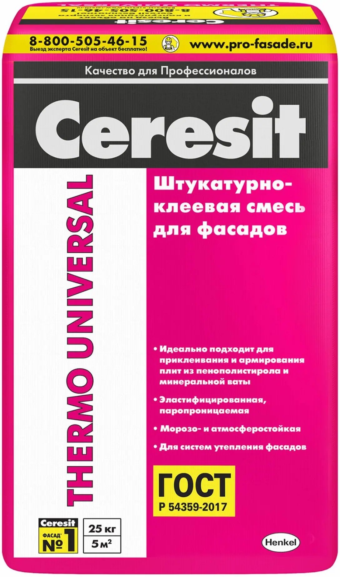 Штукатурно-клеевая смесь для теплоизоляции Церезит Термо Юниверсал 25 кг