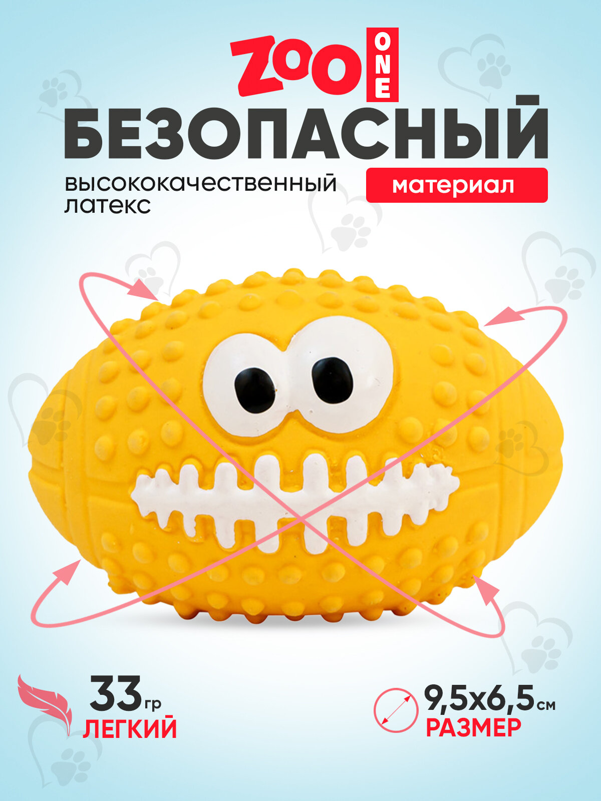 Игрушка для собак мелких, средних, крупных пород с пищалкой (мягкий латекс) Zoo One Мяч регби с глазами 9,5 см, L-436