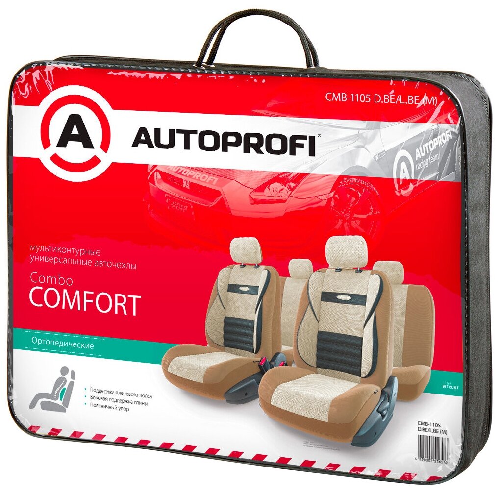 Чехлы-Авто COMFORT COMBO,ортопед.литой подгол.,вел, CMB1105BKRDM Autoprofi CMB-1105 BK/RD-M
