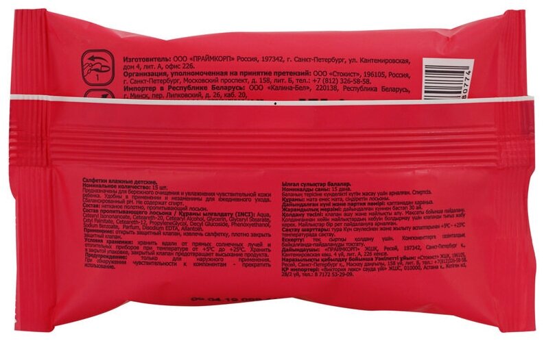 Влажные салфетки Delicare Единорог, для детей, 15 шт. информация: