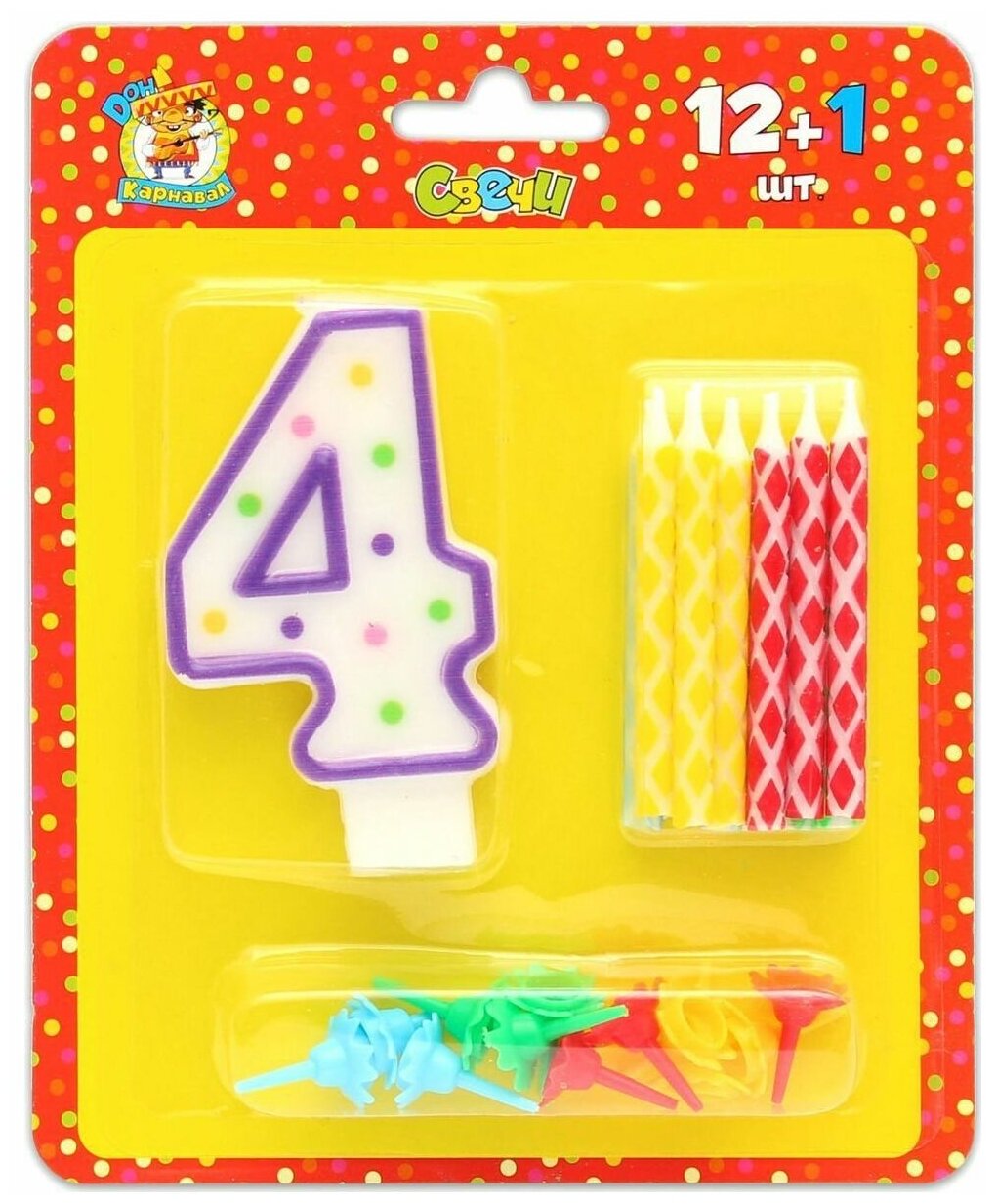 Свечи с цветным узором с подставками. 12 шт. + свеча-цифра "4"МИЛЕНДC-0426/PK информация: