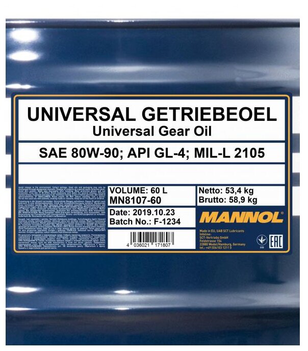 8107-60 Mannol Universal Getriebeoel 80w90 60 Л. Трансмиссионное Масло 80w-90 Api Gl-4,Mil-L 2105 MANNOLMN8107-60 информация: