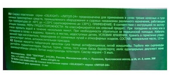 Смазка OILRIGHT Литол-24 5 кг информация: