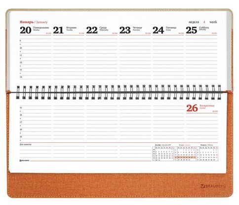 Планинг настольный датированный 2020 BRAUBERG SimplyNew, кожзам, оранжевый/бежевый, 3, 129772, 1 шт информация: