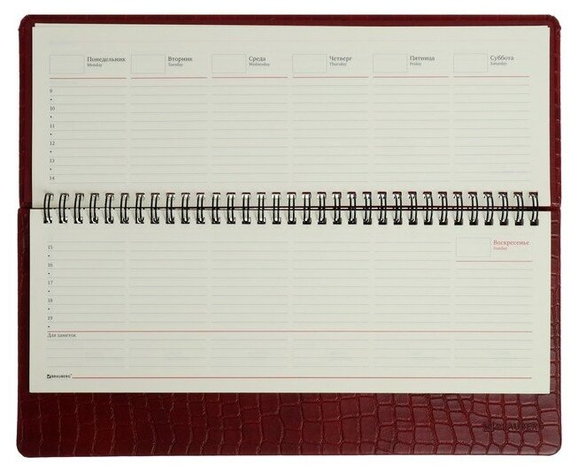 Планинг недатированный 60 листов, на гребне, BRAUBERG Alligator, под матовую крокодиловую кожу