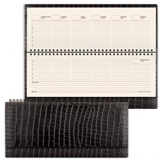 Планинг настольный BRAUBERG недатированный, 305х140 мм, "Alligator", под матовую крок. кожу, 60 л., черный, кремовый блок, 125881
