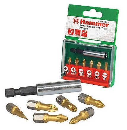 Набор бит / биты для шуруповерта HAMMER 203-901 7 шт информация: