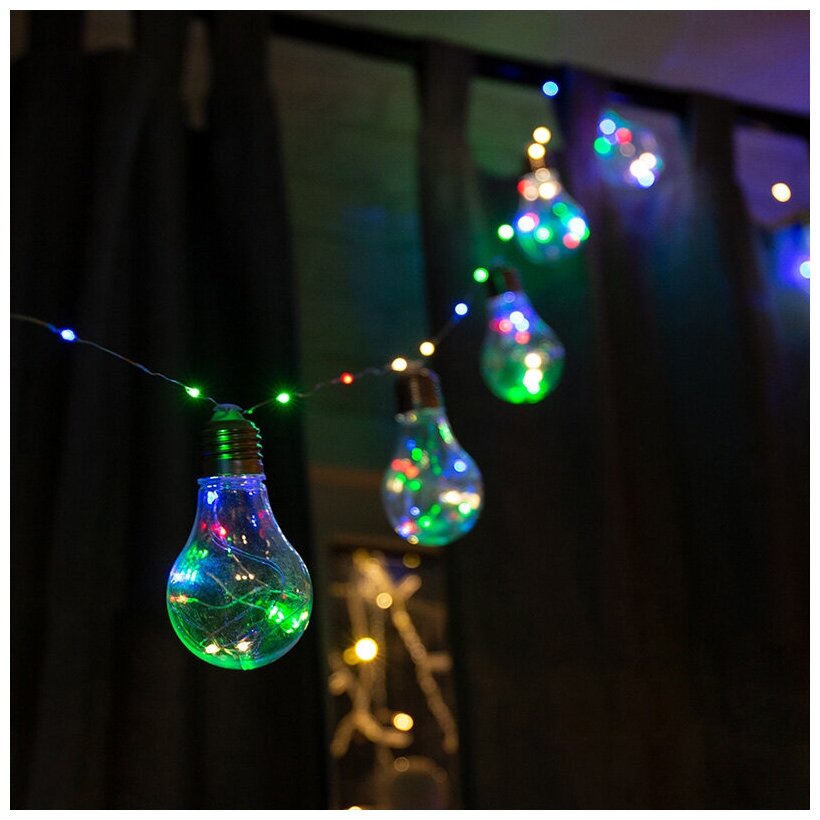 Светодиодная гирлянда NEON-NIGHT "Ретро-лампы" 3 м, 100 разноцветных светодиодов, прозрачный провод (питание от батареек)