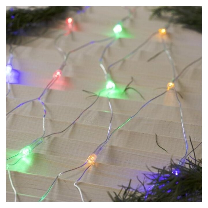 Гирлянда «Сеть» 1.6 × 1.6 м, IP20, прозрачная нить, 144 LED, свечение мульти, 8 режимов, 220 В