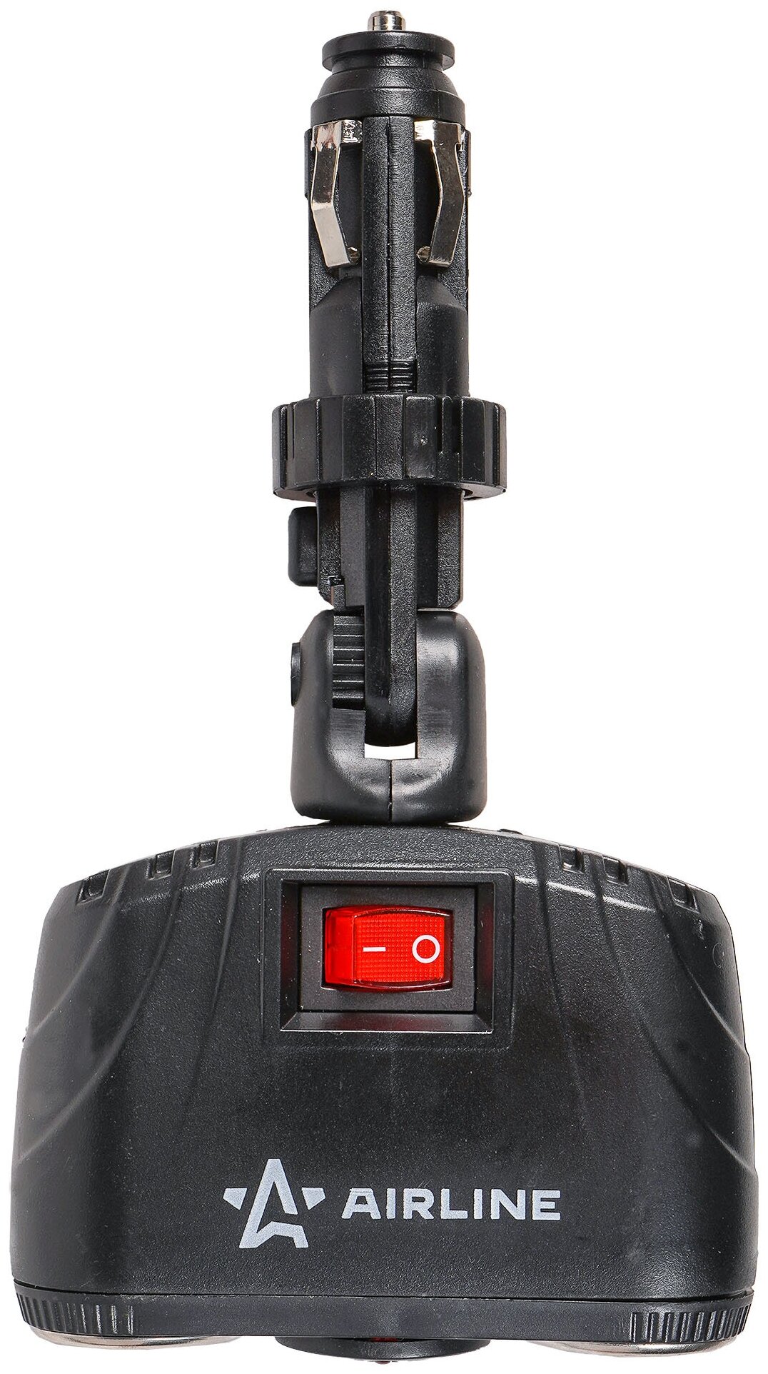 Разветвитель прикуривателя Airline 12В, 2 гнезда, 2xUSB (5В, 1А), черный, с поворотным шарниром, с кнопкой выключения, арт. ASP-2TU-08 743 ₽