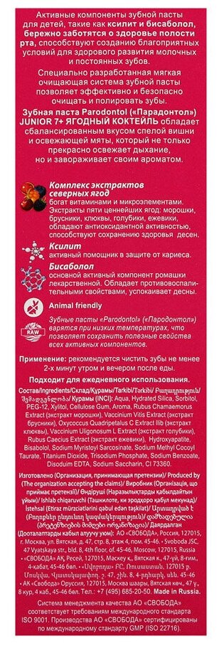 З/п Свобода Пародонтол Junior 62г Ягодный коктейль футляр информация:
