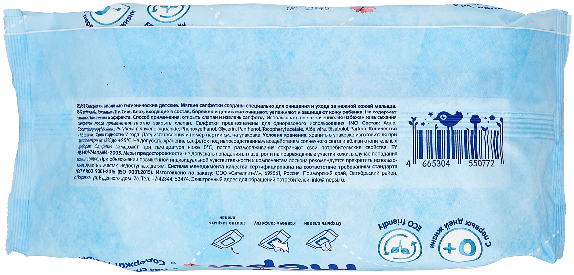 Салфетки влажные детские 72шт, гипоаллергенные Mepsi информация: