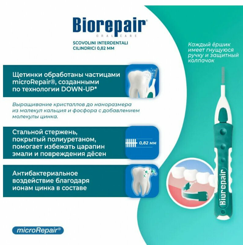 "BioRepair Scovolini Interdentali Cilindrici ершики в блистере 0.82 мм, 5 шт." информация: