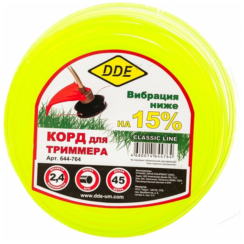 Корд триммерный (2.4 мм; 44 м; круг) DDE 644-764 информация: