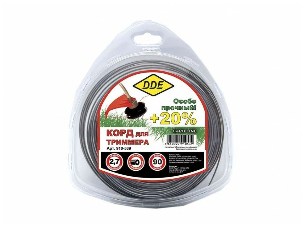 DDE Корд триммерный в блистере Hard line 2,7мм х 90м серый/красный 910-539 информация: