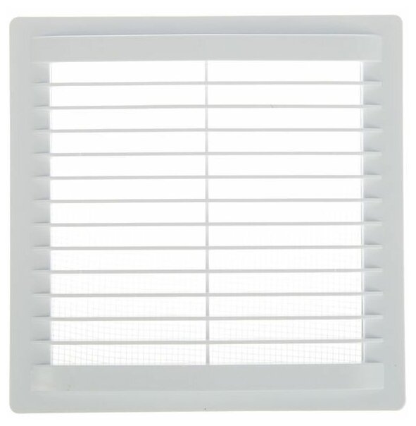 Решетка вентиляционная разъемная с москитной сеткой, прямые жалюзи, 203х203, белая