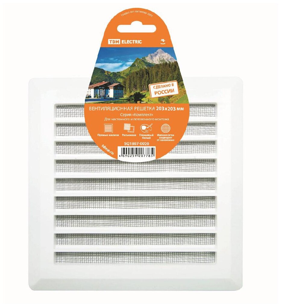 Решетка разъемная с москитной сеткой, прямые жалюзи, 203х203 TDM Артикул SQ1807-0020 информация: