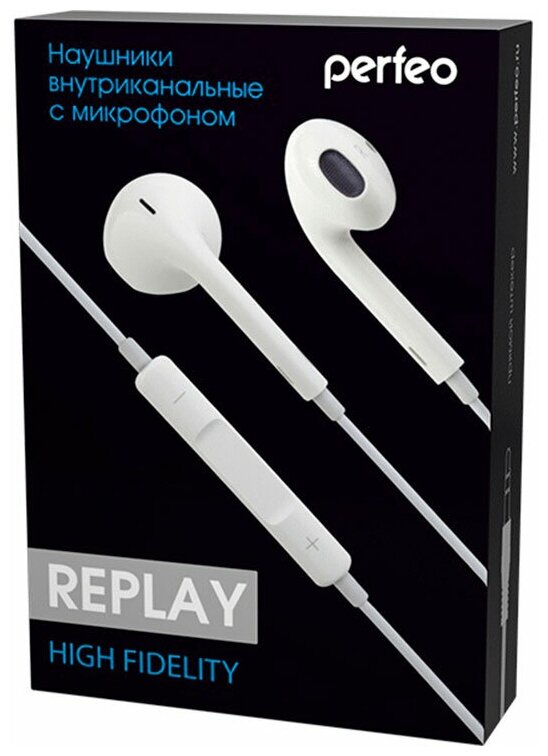 Perfeo наушники внутриканальные c управлением звуком/микрофоном «REPLAY» белые (PF_A4634)