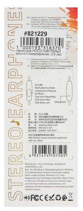 Наушники M60 Perfect sound universal earphones with mic, черные