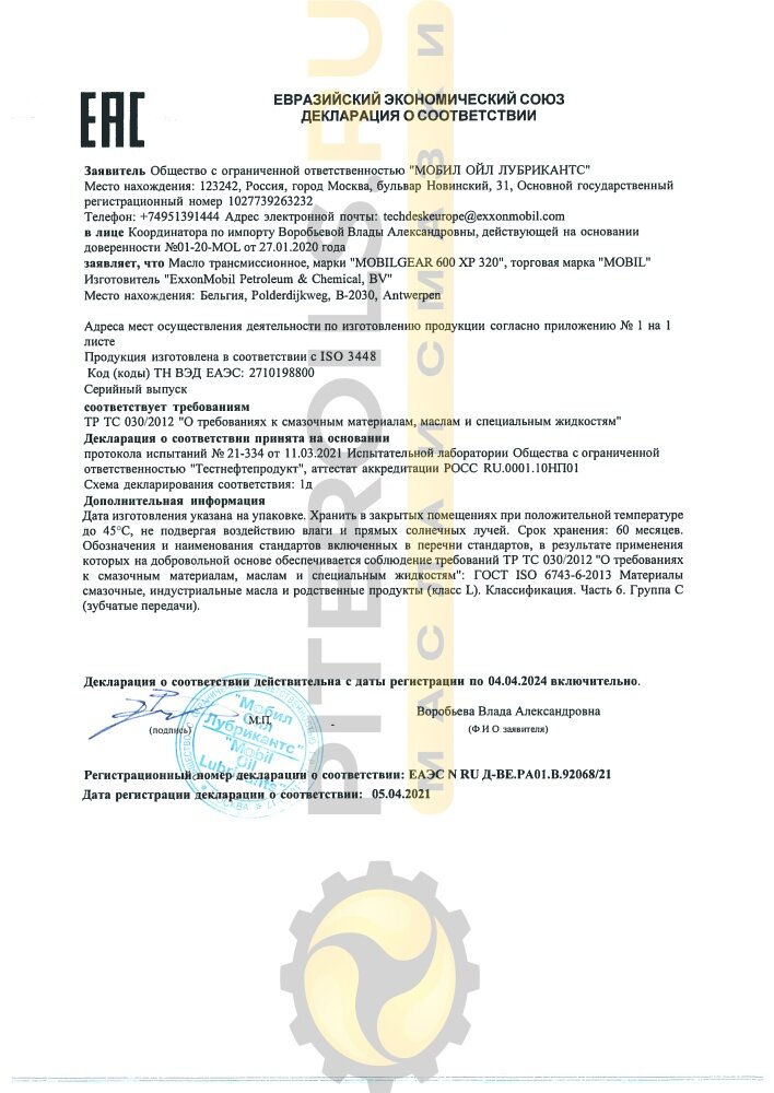 10 цен на Масло Редукторное Mobil Mobilgear 600 Xp 320 208 Л 149647 Mobil арт. 149647