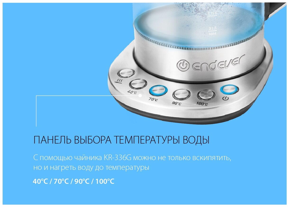 Чайник электрический стеклянный Endever Skyline KR-336G / 1,7л / 2200 Вт / 4 температурных режима