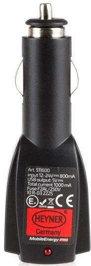 HEYNER 511600 Зарядное устройство от прикуривателя с 2-мя USB; 12/24 В жёстк.HEYNER