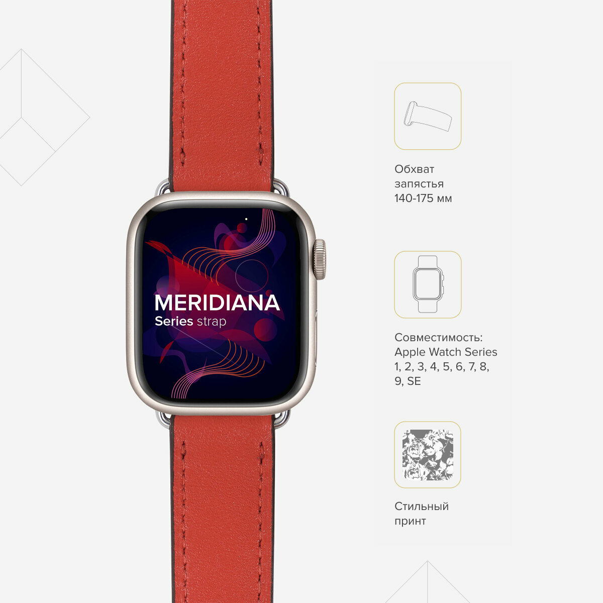 Ремешок Lyambda MERIDIANA для Apple Watch Series 1-8, SE, 38/40/41 mm LWA-01-40-RDP (красный, бежевый) 795 ₽