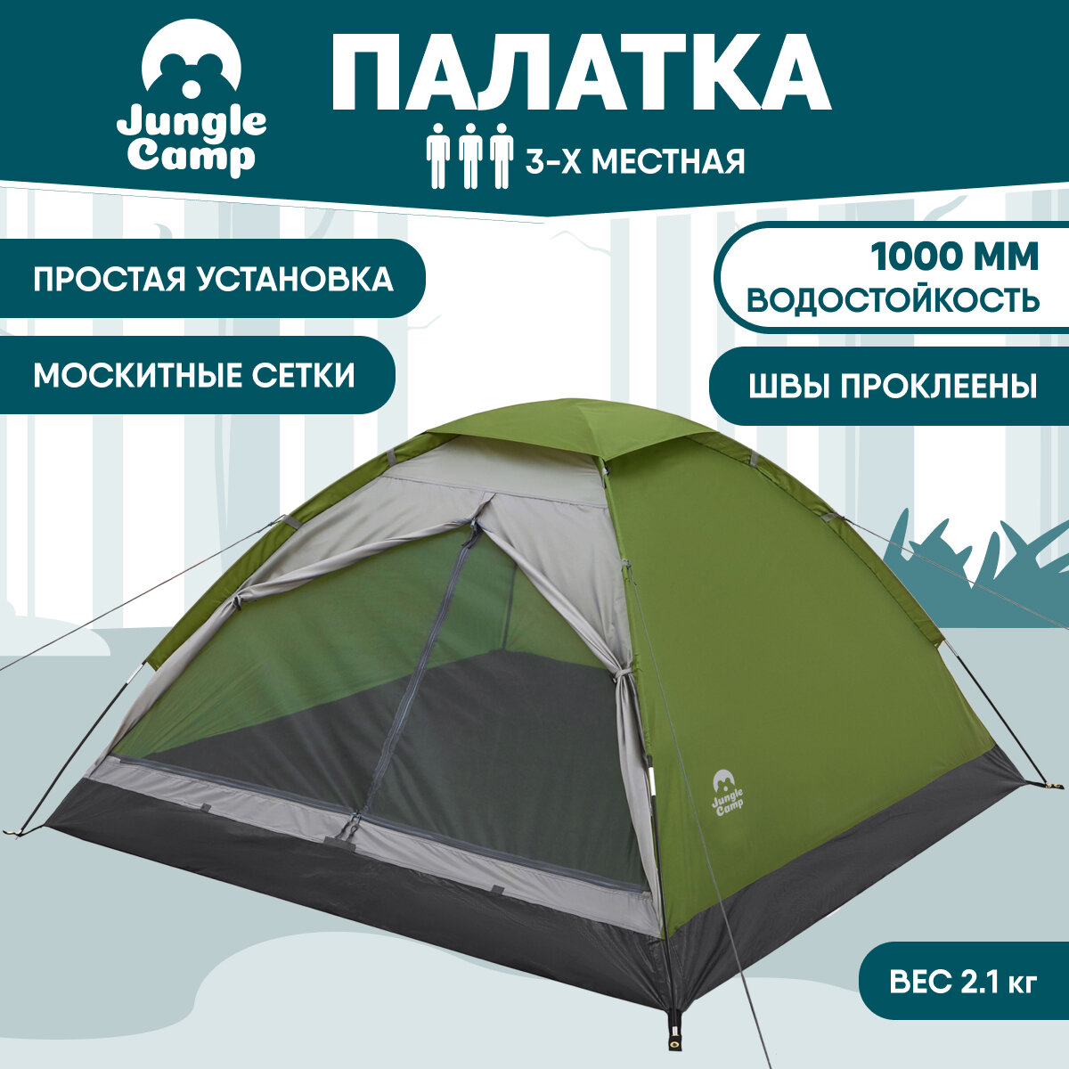 Палатка трёхместная JUNGLE CAMP Lite Dome 3, цвет: зеленый/серый