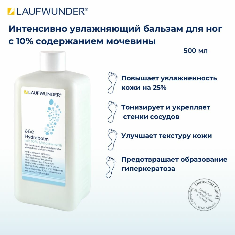 Laufwunder Hydrobalm Urea Бальзам для ног с 10% содержанием мочевины, увлажняющий крем для ног, 500 мл информация: