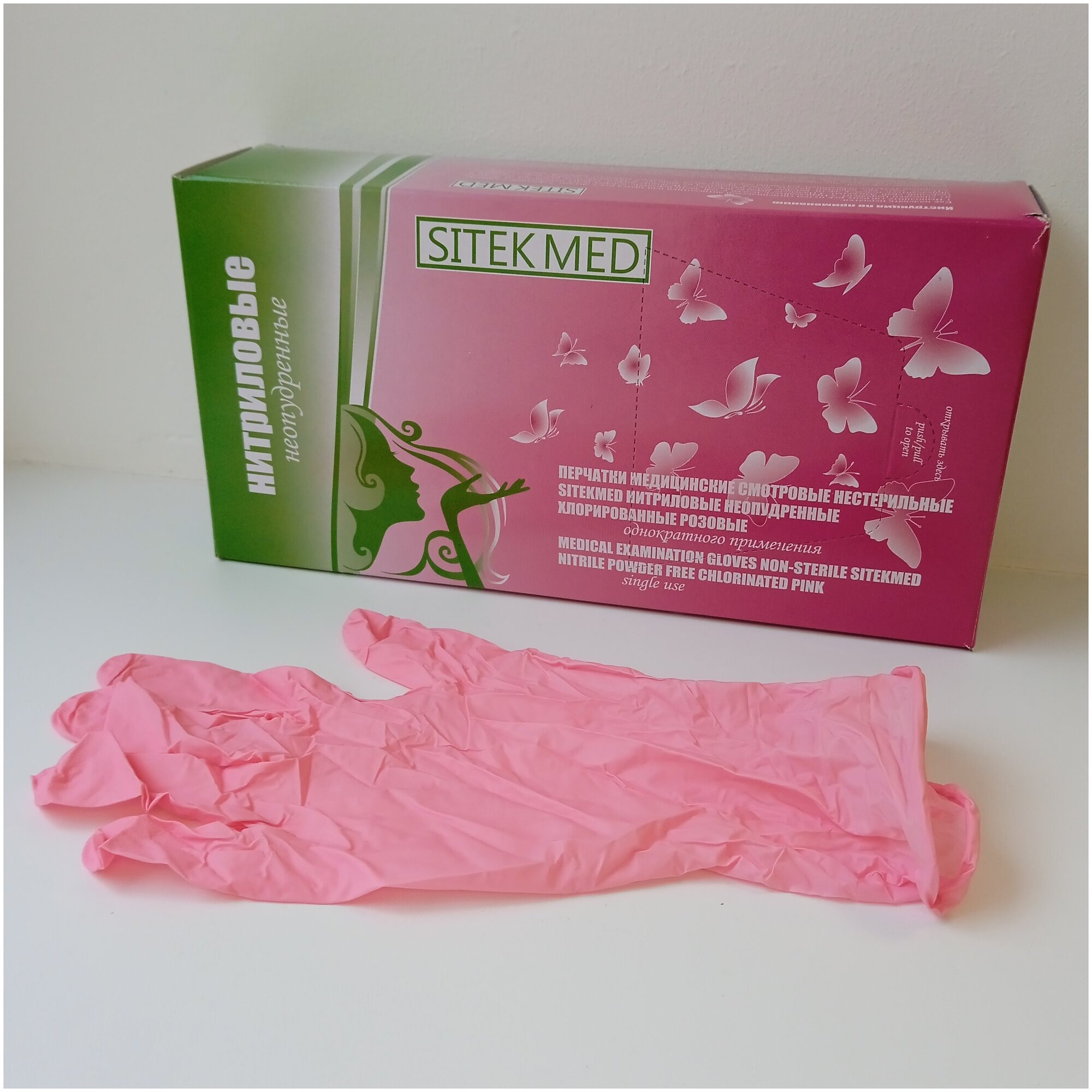 Перчатки нитриловые неопудренные SITEK MED, размер S, 50 пар, 100 штук, розовые информация: