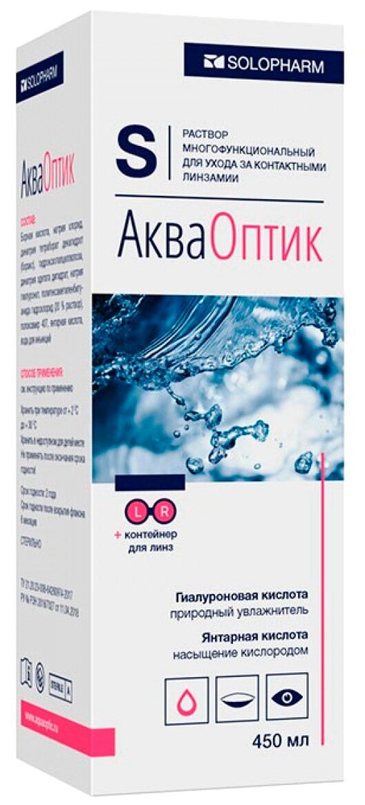 Раствор многофункциональный для контактных линз SoloPharm АкваОптик, 450 мл с контейнером для линз