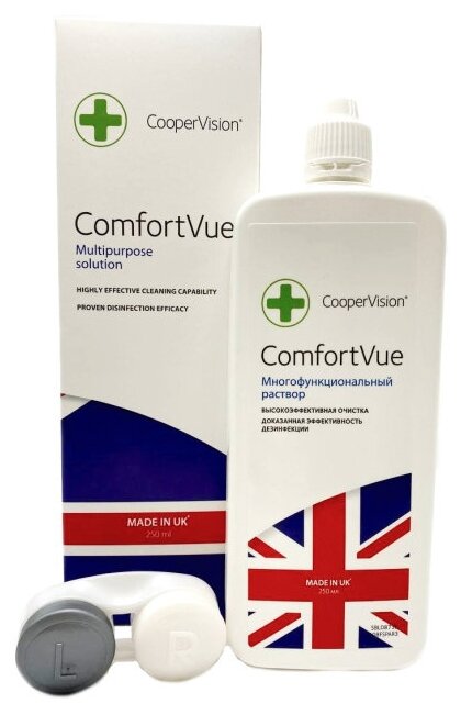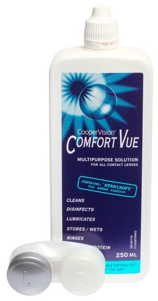 Универсальный раствор для контактных линз CooperVision Comfort Vue (КуперВижн Комфорт Вью), жидкость для линз, 250 мл + контейнер