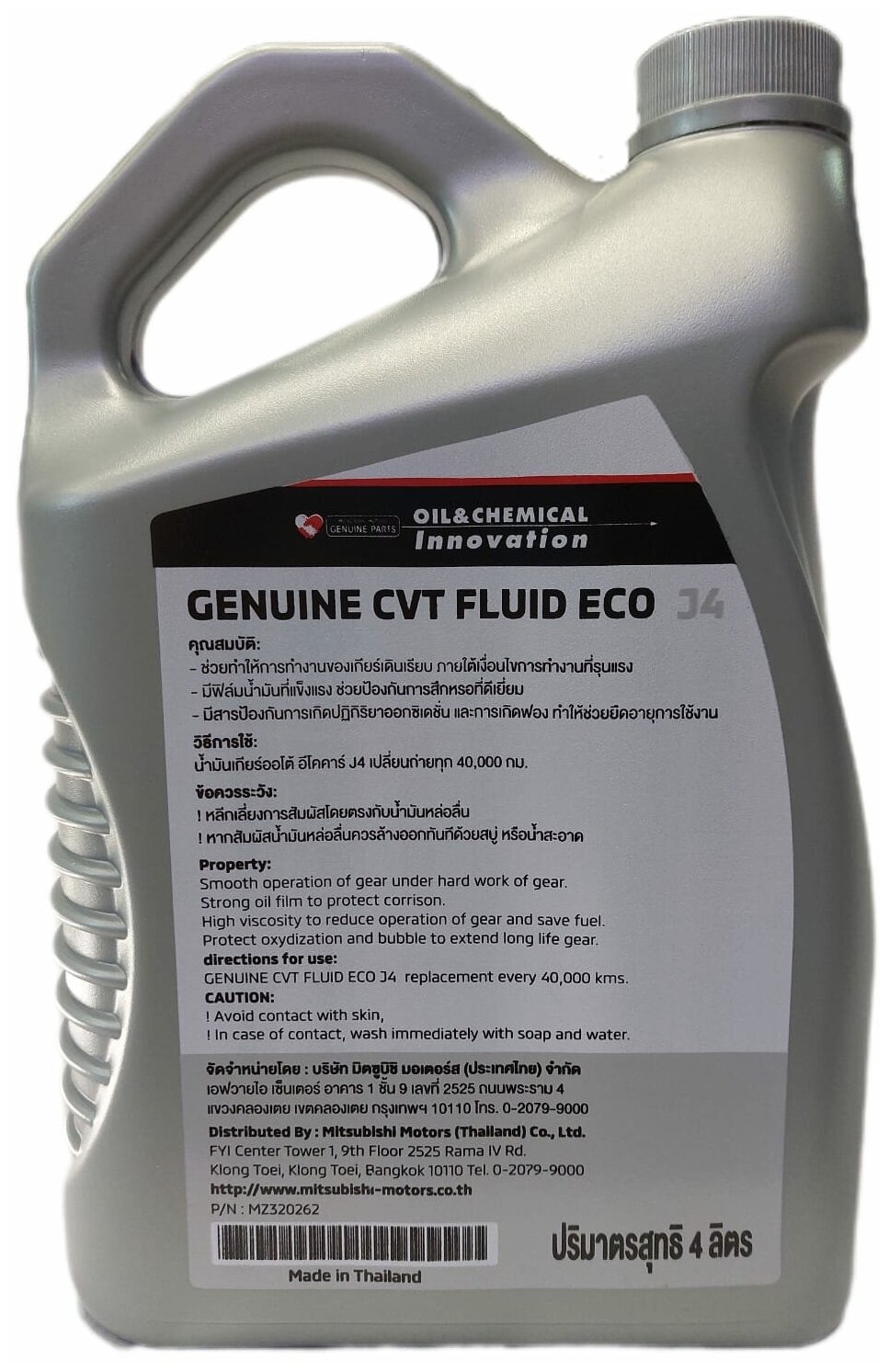 Масло трансмиссионное Mitsubishi CVT Fluid ECO J4 (таиланд), (4л) + бирка, жидкость АКПП синтетика для коробки передач Мицубиси MZ320262, РТЛ