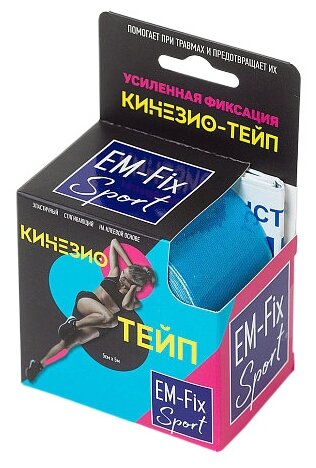 10 цен на Бинт эластичный Кинезио-тейп "EM-Fix Sport" 5м*5см голубой