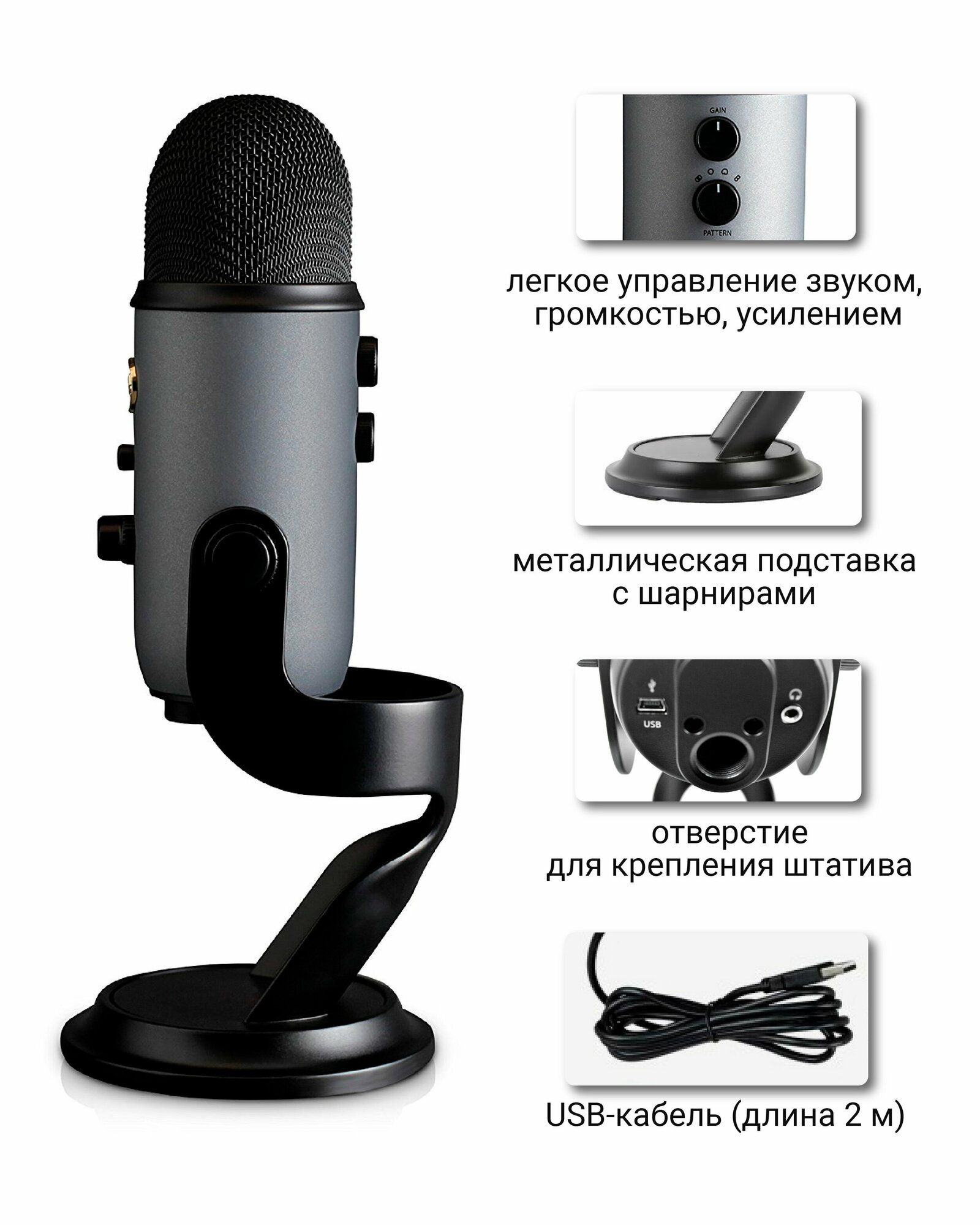 Микрофон Blue Yeti USB, серый 988-000226 информация: