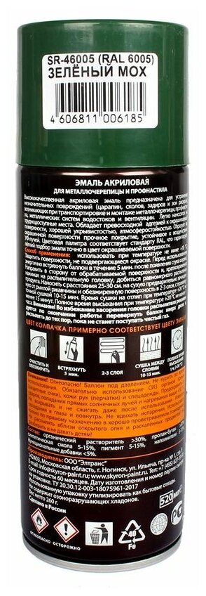 Краска зелёный мох skyron sr-46005 для металлочерепицы и профнастила 520мл аэрозоль