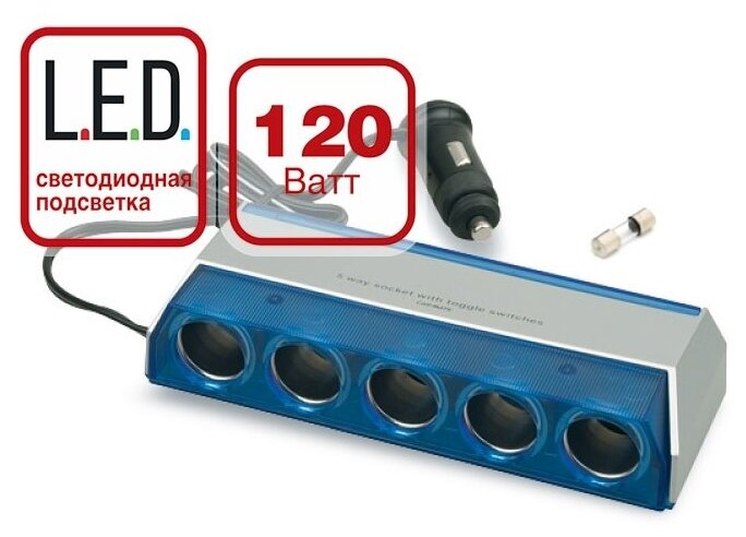Разветвитель прикуривателя 12/24V (на 5 выходов) AVS CS501