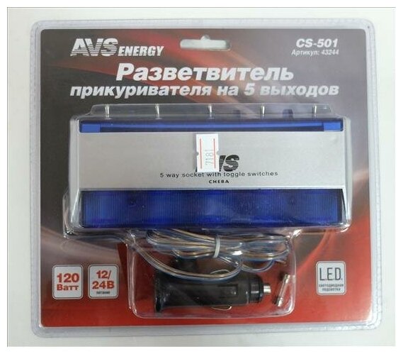Разветвитель прикуривателя AVS CS501 синий информация: