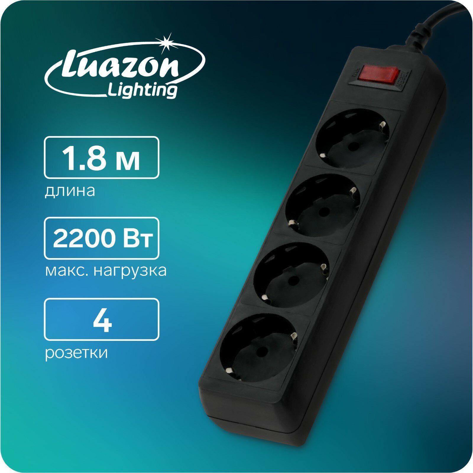 Сетевой фильтр Luazon Lighting, 4 розетки, 1.8 м, 2200 Вт, 3 х 0.75 мм2, 10 А, 220 В, черный