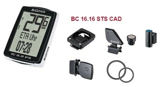 Велокомпьютер Sigma, BC 16.16 STS CAD,01618,16 функций, беспроводной,черно-белый информация: