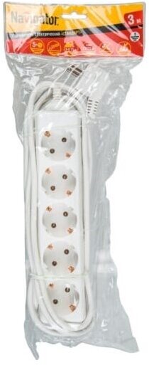 Удлинитель Navigator 71 555 NPE-S-05-300-E-3x0.75, 5 розеток, 3 м, с/з, 10А / 2200 Вт белый информация: