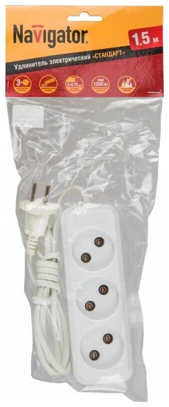 Удлинитель Navigator, NPE-S1-03-150-X-2x0.75, б/з, 3 гнезда, ШВВП, 1.5м 71448 информация: