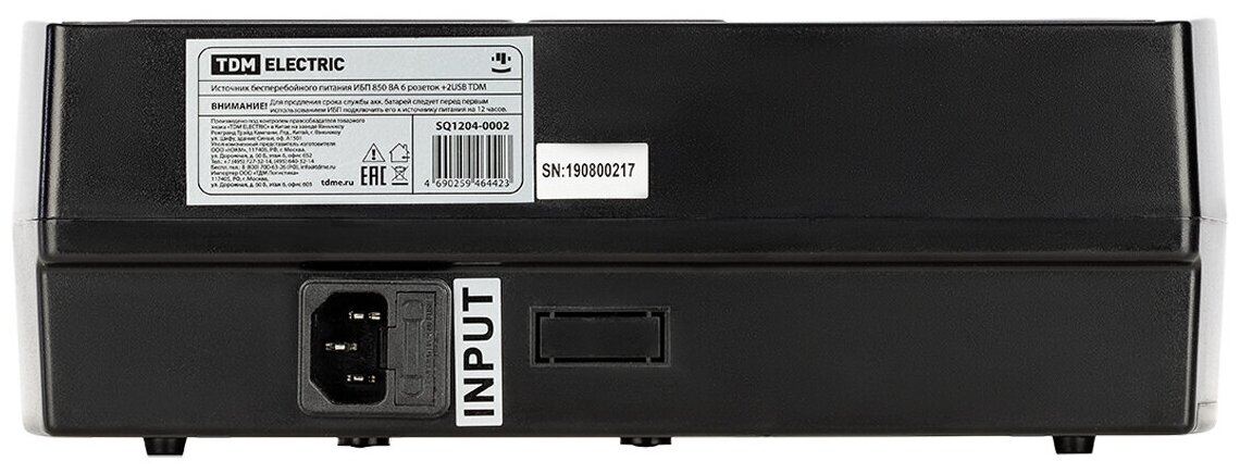 TDM SQ1204-0002 Источник бесперебойного питания ИБП 850 ВА 6 розеток +2usb . информация: