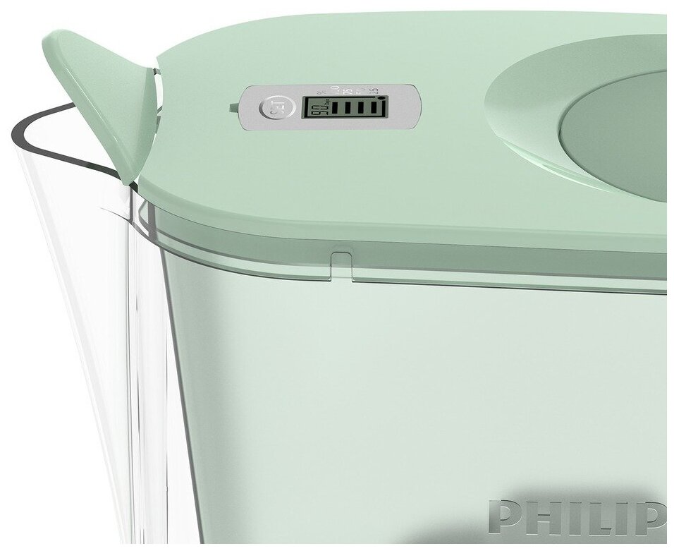 Фильтр-кувшин для воды Philips AWP2938GNT/51 4л, с цифровым таймером, задерживает хлор, известь и пфок, зеленый