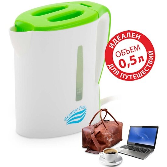 Чайник Великие Реки Мая-1 бело-салатовый, 0,5 л, пластик, 500 Вт .