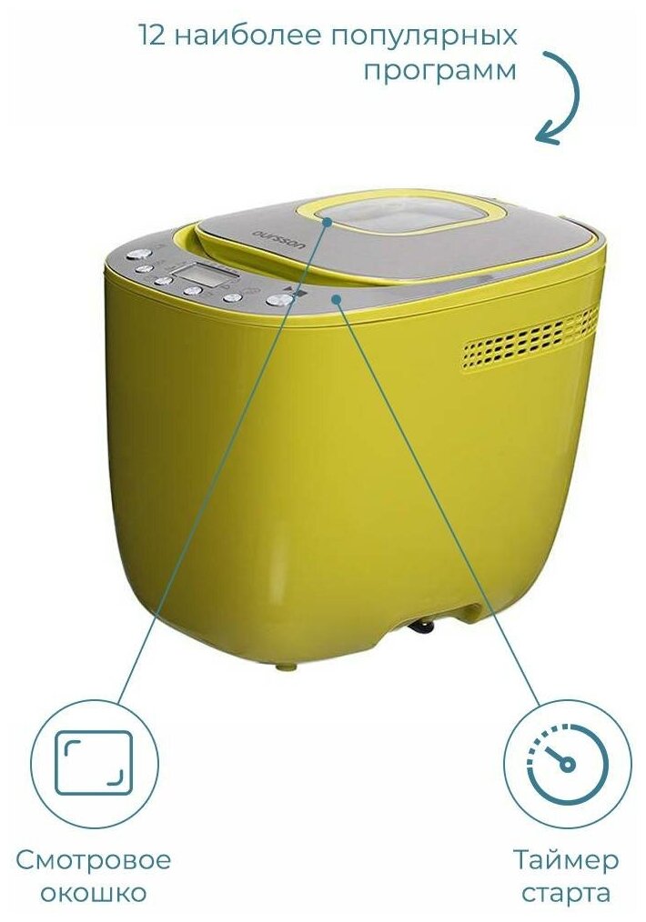 Хлебопечь OURSSON BM1023JY/GA, зеленое яблоко информация: