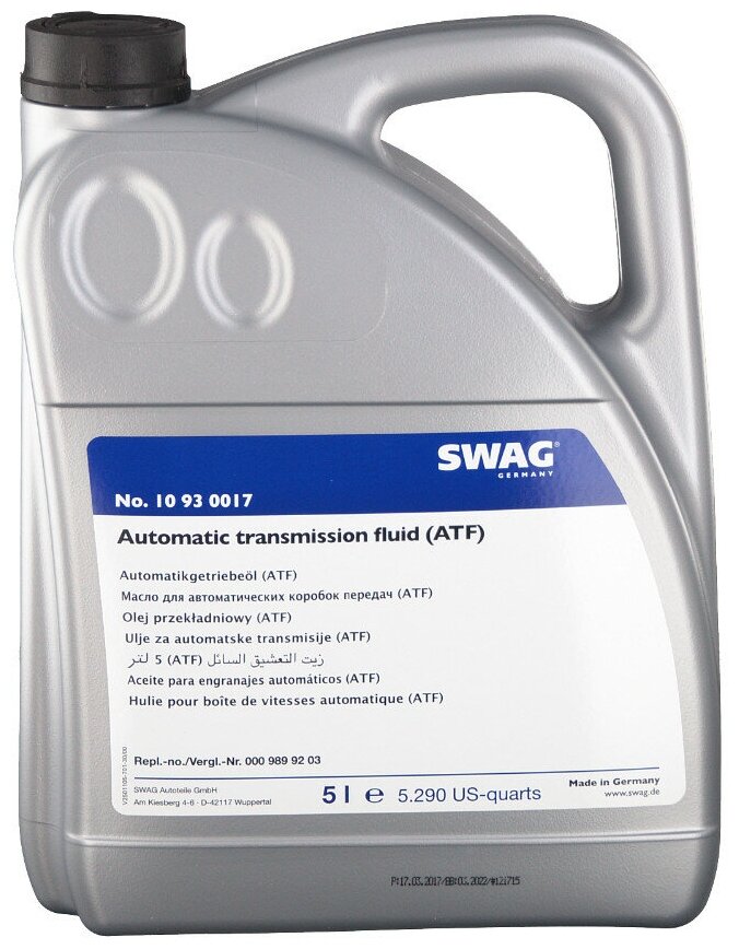 Жидкость для гидросистем; Трансмиссионное масло; Масло автоматической коробки передач SWAG 10930017